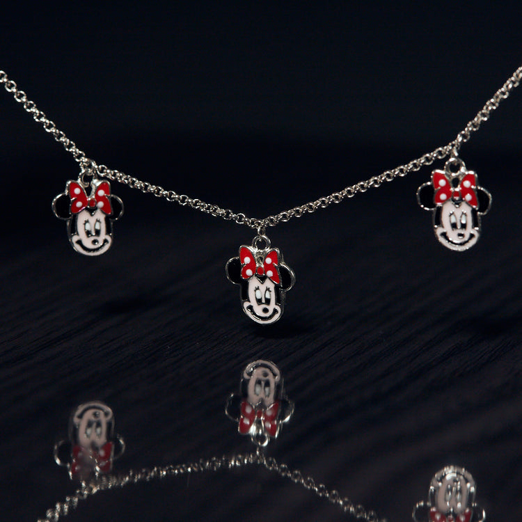 Το κόσμημα αυτό διαθέτει λουστρέ επιφάνεια. Κεντρικό του στοιχείο είναι το κινούμενο σχέδιο Minnie.