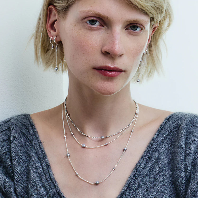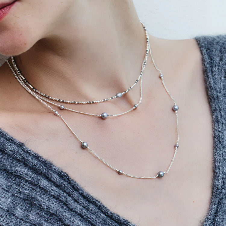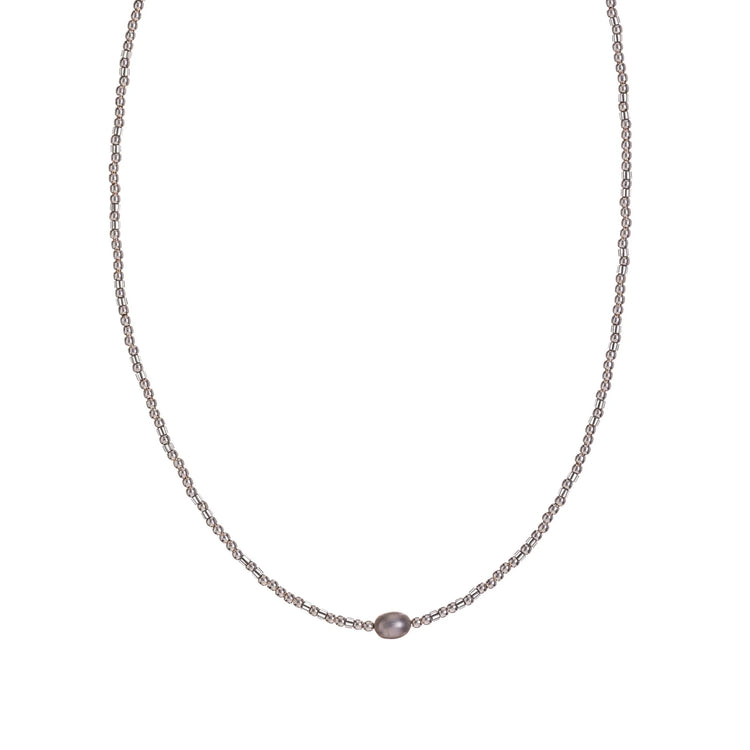Κολιέ από ασήμι 925 με miyuki και κεντρικό γκρι μαργαριτάρι.