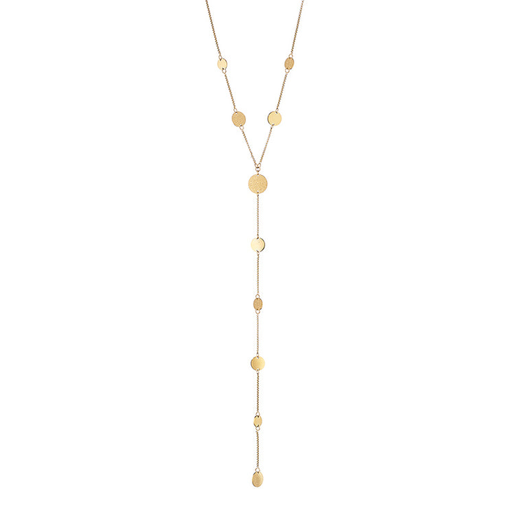 Ένα εντυπωσιακό γυναικείο κολιέ, κατασκευασμένο από ατσάλι σε κίτρινο χρωματισμό με στρογγυλά στοιχεία.