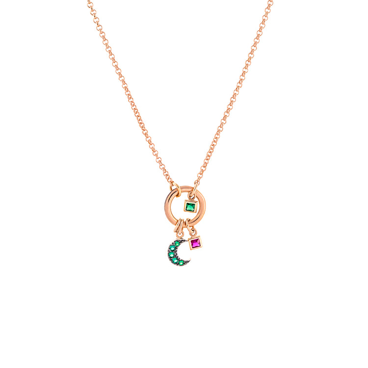 LOISIR ροζ χρυσό κολιέ Charming με φεγγάρι και πέτρες
