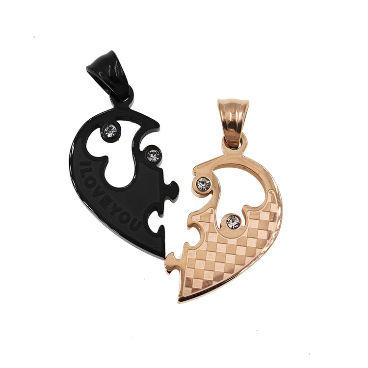 Έχει σχήμα καρδιάς δίχχρωμη που σπάει για να την μοιραστείς με το άλλο σου μισό.  Η μία είναι μαύρη και αναγράφεται "I love you " και η άλλη μισή είναι ροζ χρυσή με σχέδιο στυλ σκακιέρας . Επίσης και οι δύο μισές καρδιές διακοσμούνται με λευκά κρύσταλλα.