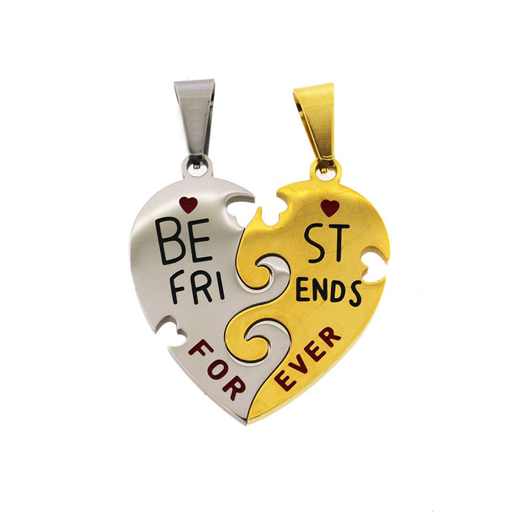 AV unisex ατσάλινο μενταγιόν σπαστή δίχρωμη καρδιά "Best Friends"