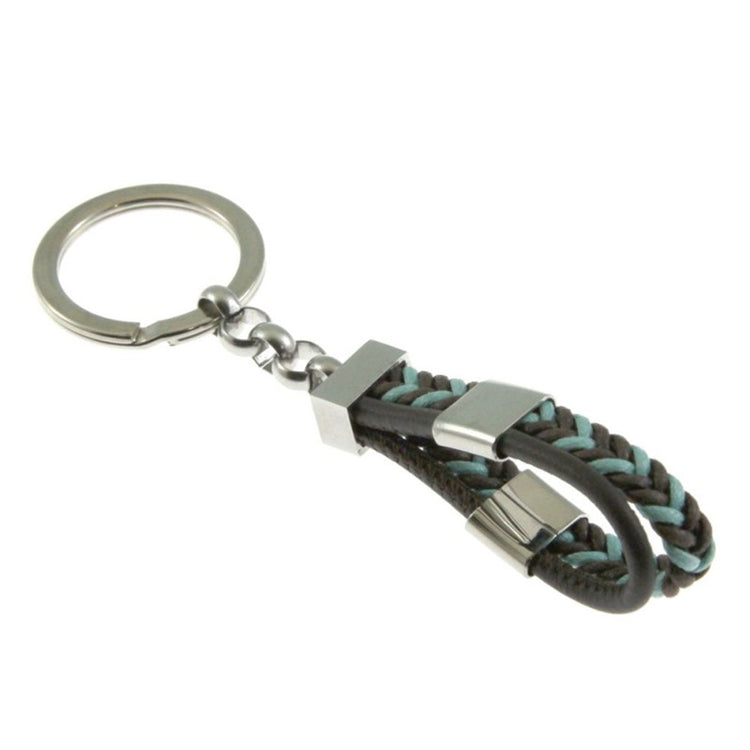 AV ανδρικό ατσάλινο μπρελόκ με δέρμα σε μαύρο και τυρκουάζ χρώμα