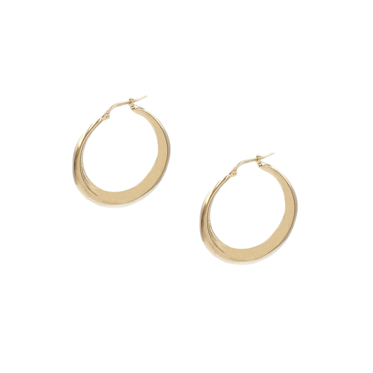 Σκουλαρίκια κρίκοι με λουστρέ επιφάνεια. Έχουν καμπυλωτό σχήμα και λεπταίνει ο κρίκος όσο φτάνει πάνω στο κούμπωμα.