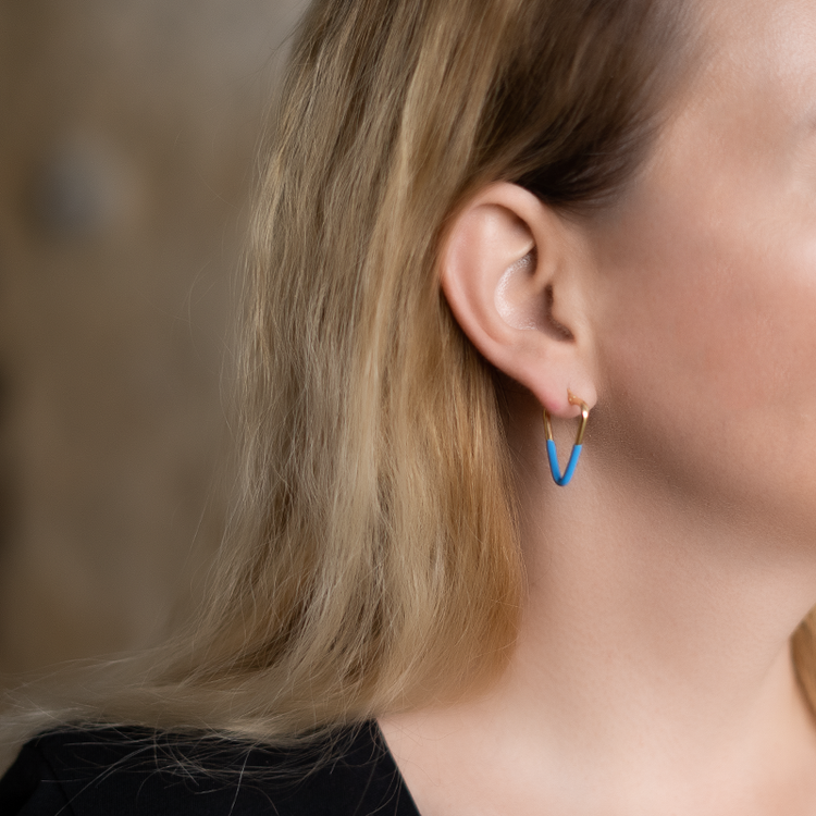 Ένα εκλεπτυσμένο σετ σκουλαρίκια AV με γαλάζιο σμάλτο, κατασκευασμένα από ασήμι 925.
