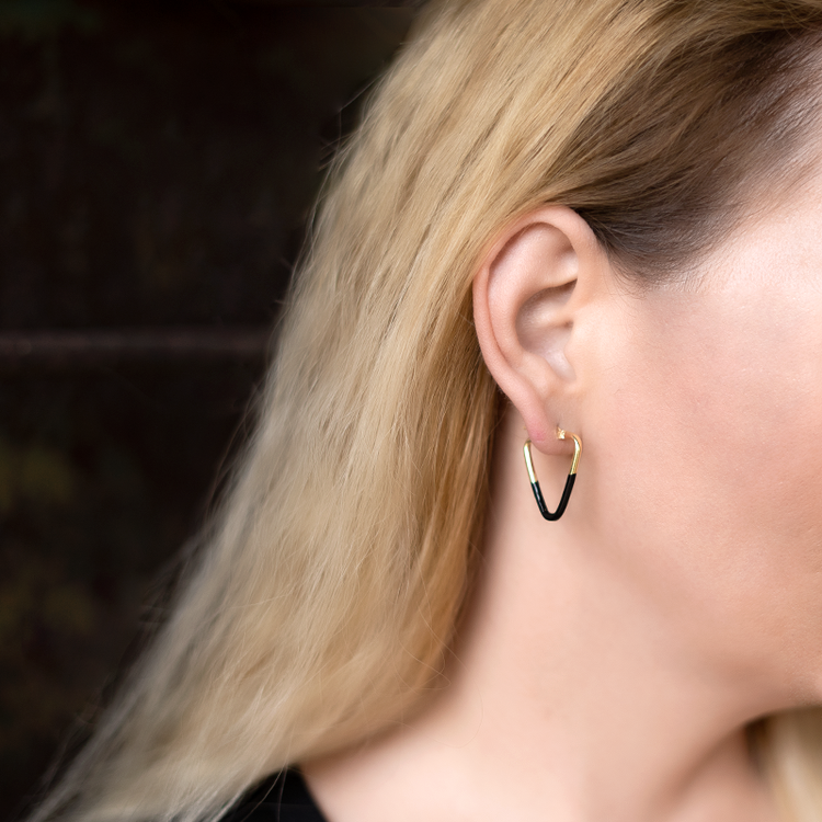 Ένα εκλεπτυσμένο σετ σκουλαρίκια AV με μαύρο σμάλτο, κατασκευασμένα από ασήμι 925.