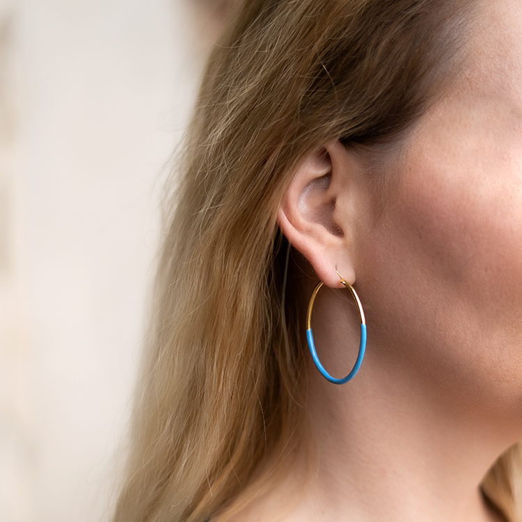 AV ασημένια 925 σκουλαρίκια κρίκοι με γαλάζιο σμάλτο