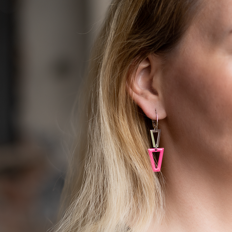 AV ασημένια 925 σκουλαρίκια με ροζ τρίγωνα