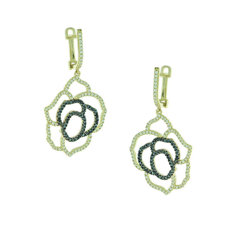 AV χρυσά γυναικεία κρεμαστά σκουλαρίκια με λουλούδι από πέτρες ζιργκόν