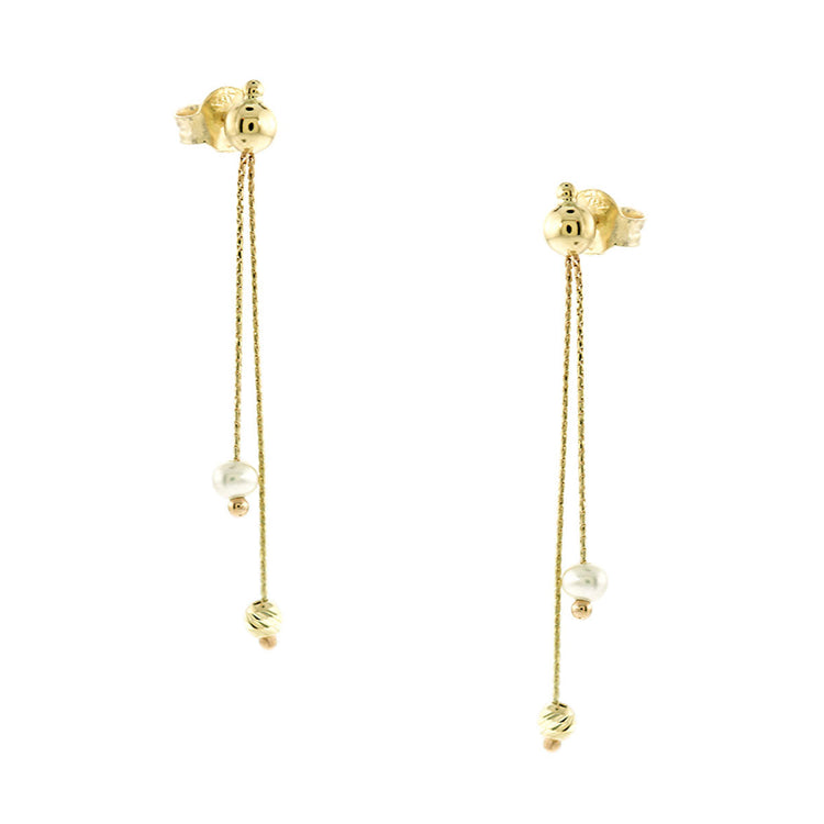 AV γυναικεία χρυσά κρεμαστά σκουλαρίκια με φυσικό μαργαριτάρι και διαμανταρισμένες μπίλιες