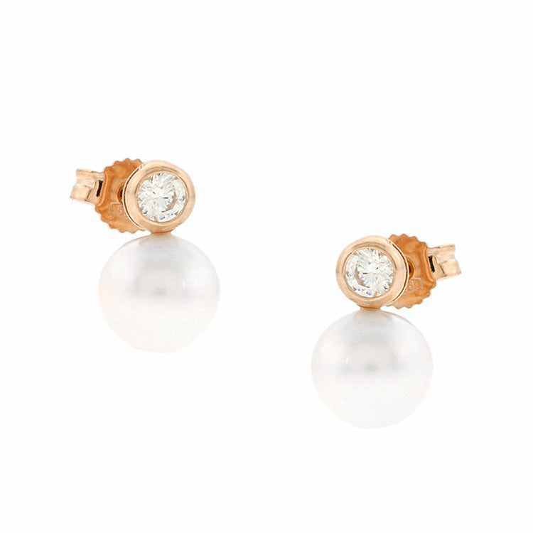 AV γυναικεία ροζ-χρυσά καρφωτά σκουλαρίκια με πέτρες ζιργκόν και φυσικό μαργαριτάρι