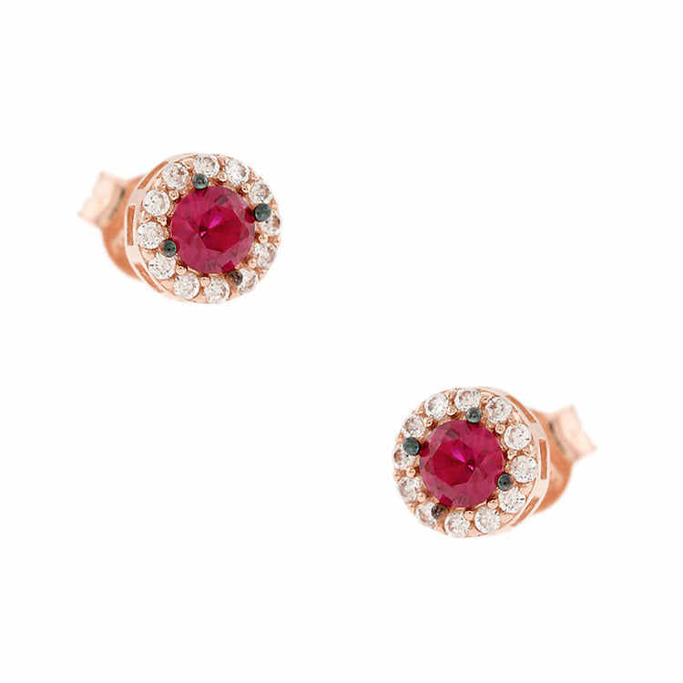 AV ροζ-χρυσά σκουλαρίκια ροζέτες με πέτρες ζιργκόν