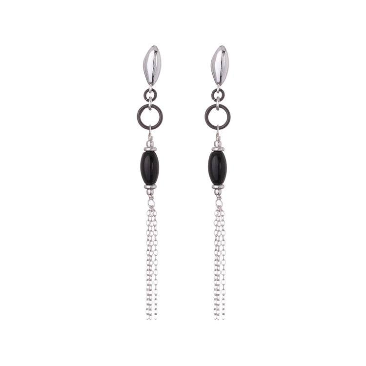 Σκουλαρίκια με μαύρο αχάτη και επίστρωση ρουθηνίου, από ασήμι 925