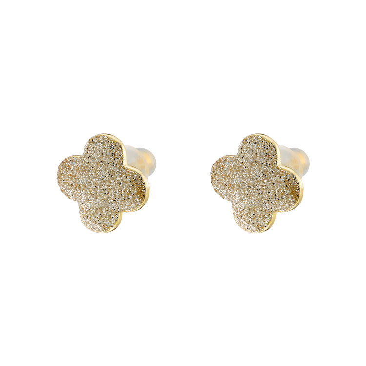 Ένα όμορφο γυναικείο σετ σκουλαρίκια, κατασκευασμένο από μέταλλο σε κίτρινο χρωματισμό με σταυρό και ασημί glitter.