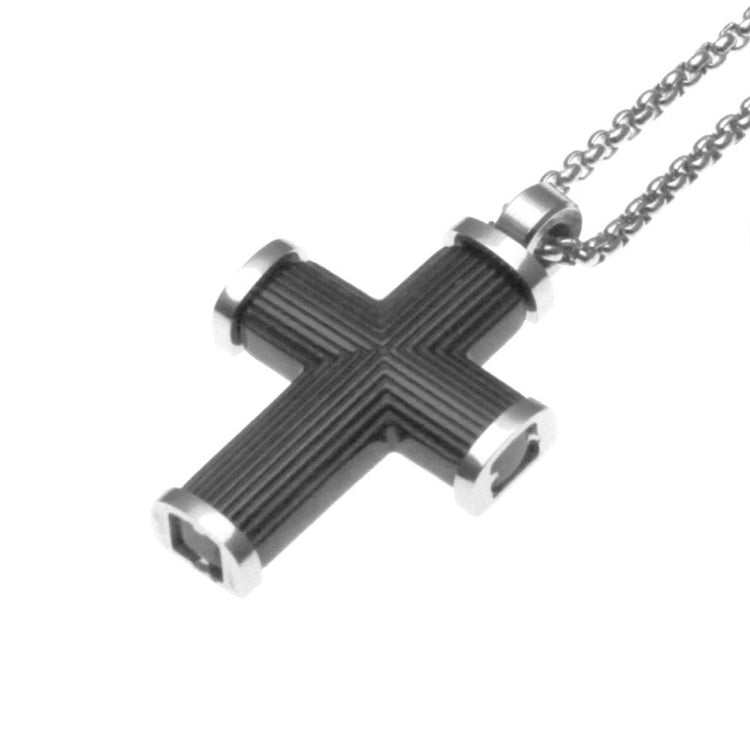 Ένας πολύ όμορφος και με ιδιαίτερο σχεδιασμό ανδρικός σταυρός με αλυσίδα, κατασκευασμένος από δίχρωμο επιροδιωμένο και λευκό ατσάλι.