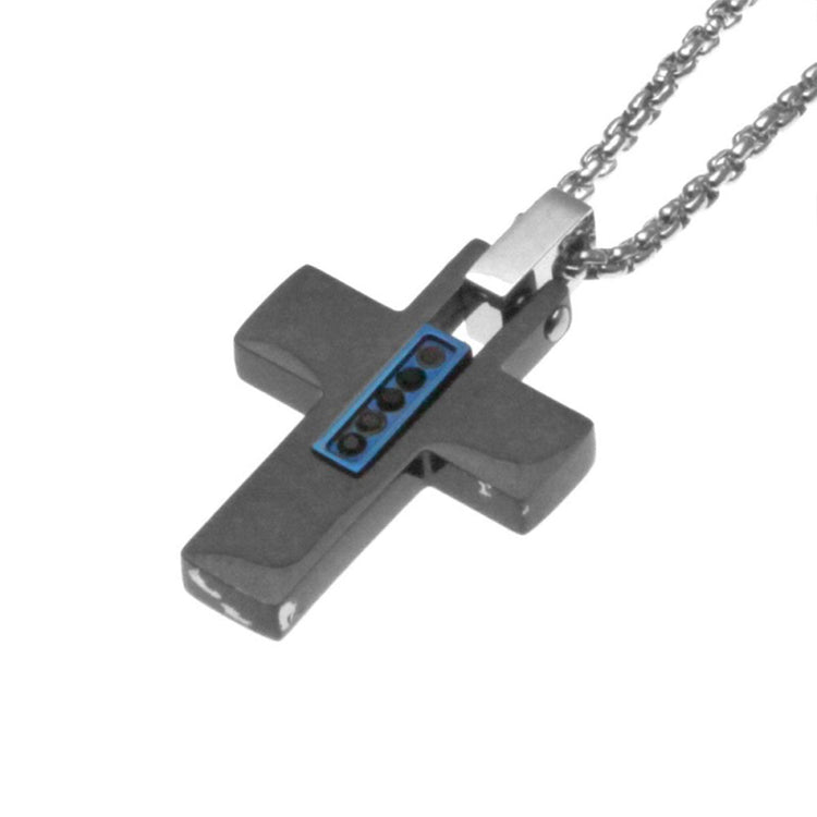 Ένας πάρα πολύ όμορφος ανδρικός σταυρός με αλυσίδα, κατασκευασμένος από δίχρωμο επιροδιωμένο και λευκό ατσάλι.