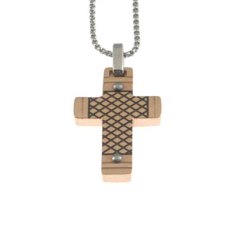 Ένας πάρα πολύ όμορφος ανδρικός σταυρός με αλυσίδα, κατασκευασμένος από επίχρυσο ροζ ατσάλι.