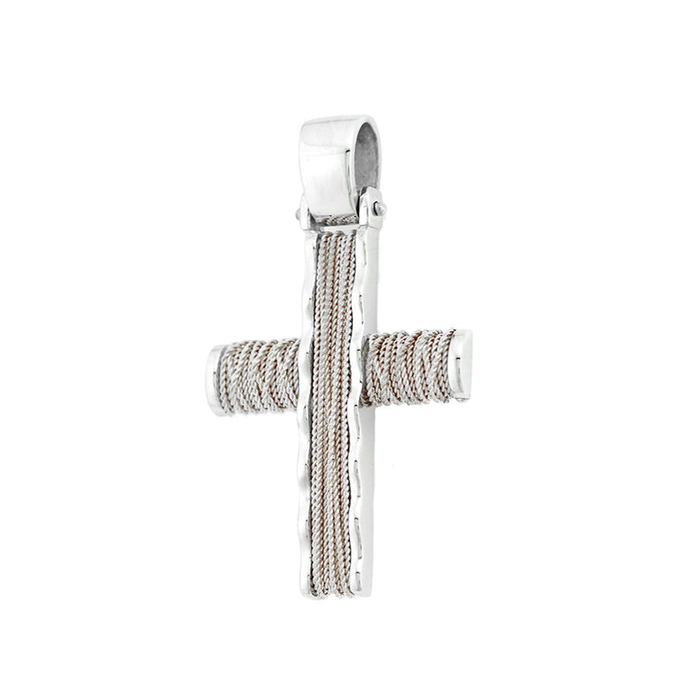 Ένας υπέροχος και άκρως εντυπωσιακός αντρικός βαπτιστικός σταυρός, κατασκευασμένος από λευκόχρυσο μέταλλο 14 Καρατίων.