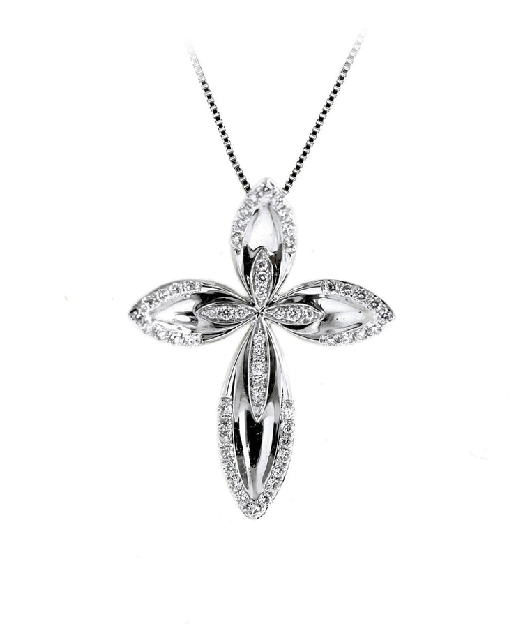 Ένας άκρως εντυπωσιακός γυναικείος σταυρός, κατασκευασμένος από υπέρλαμπρο λευκόχρυσο μέταλλο 18Κ  και λουστρέ καταπληκτικό φινίρισμα.
