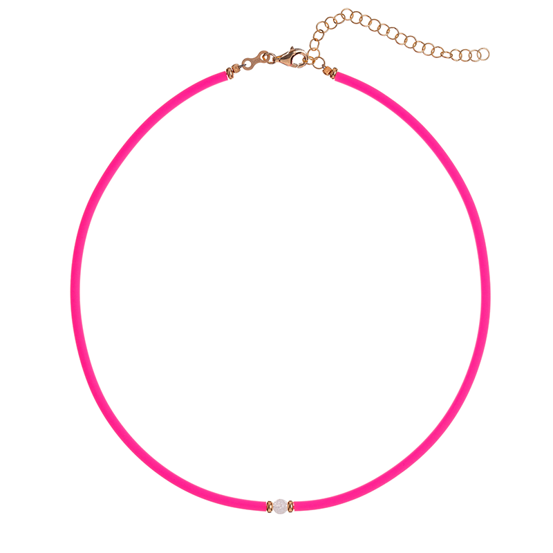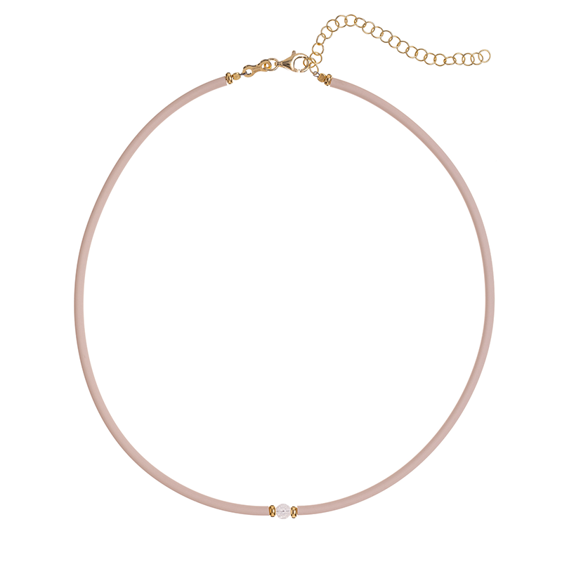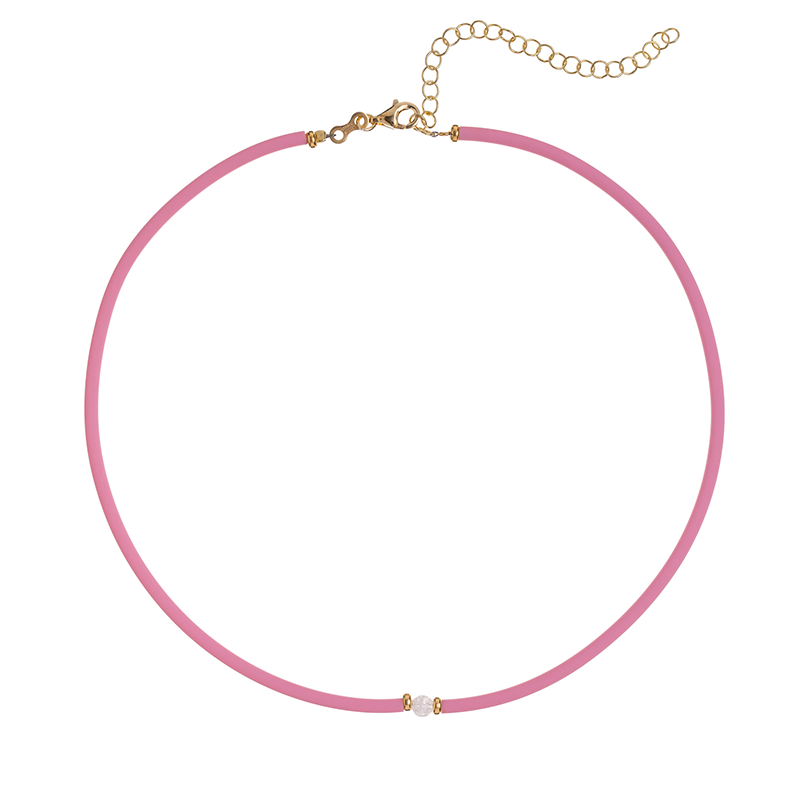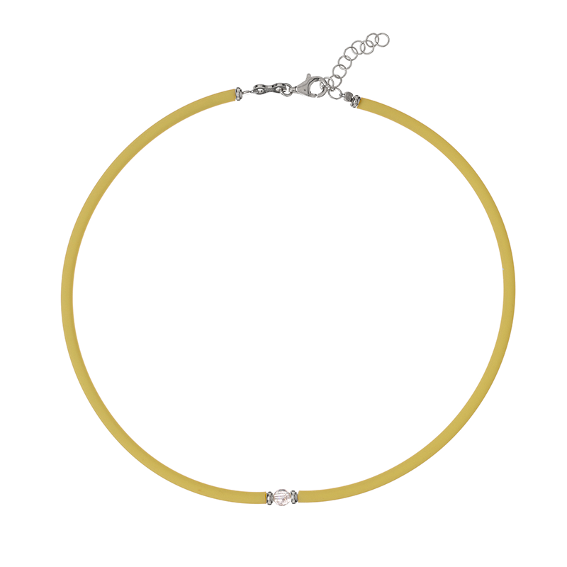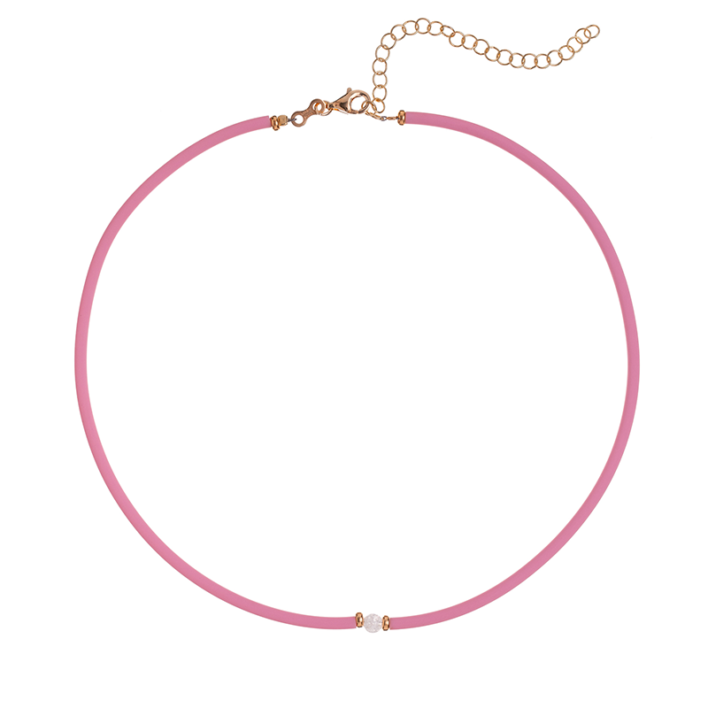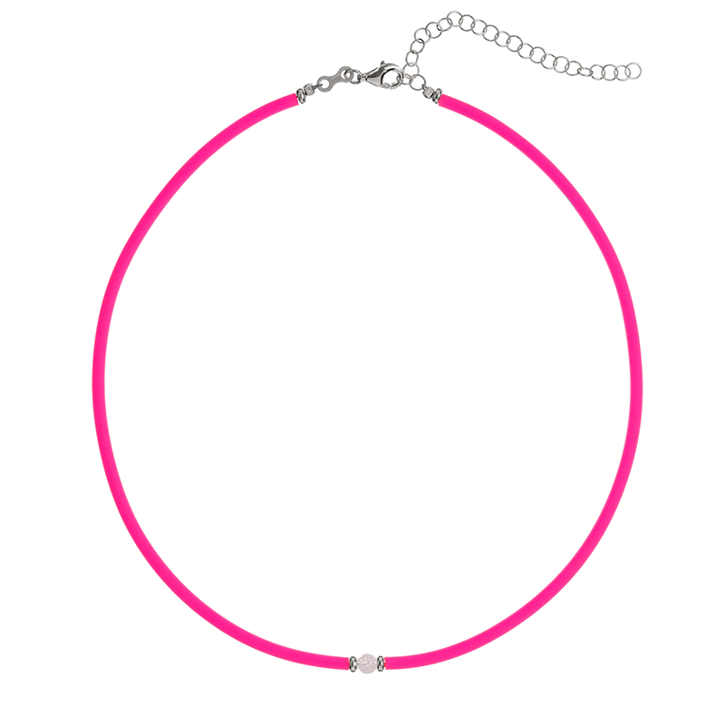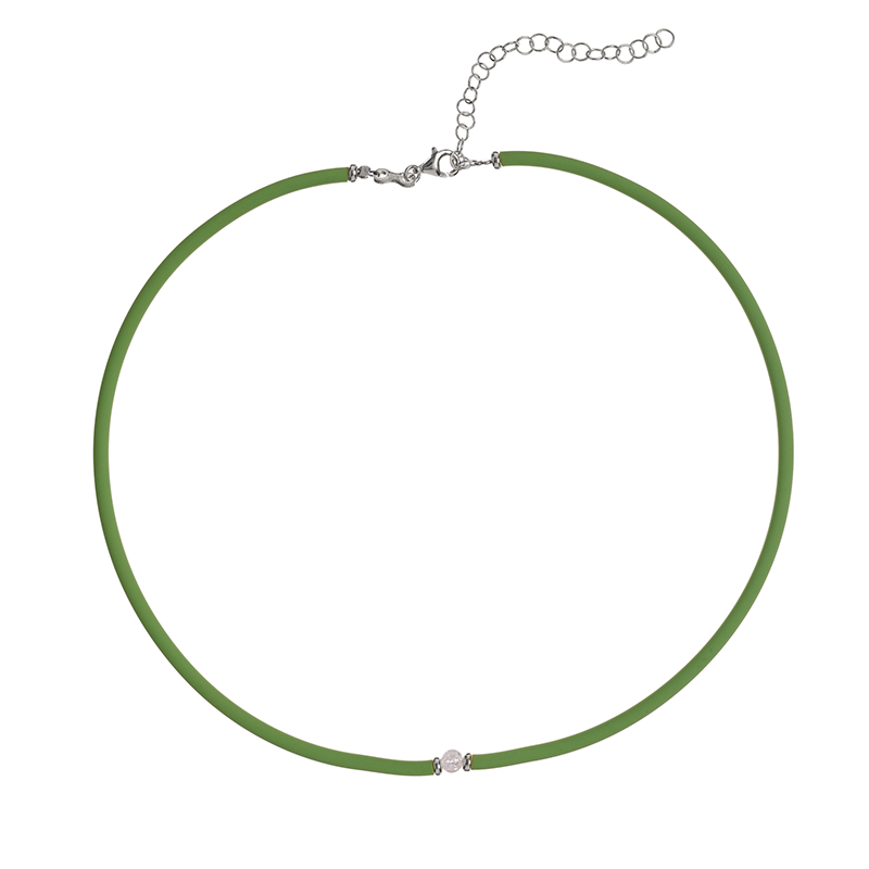 Ένα όμορφο κολιέ με λευκή κεντρική πέτρα, από καουτσούκ σε διάφορα χρώματα, από την Alisia, κατασκευασμένο από ασήμι 925.