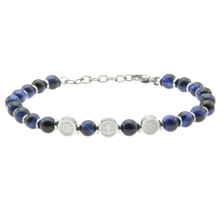 AV ανδρικό ατσάλινο βραχιόλι με μπλε μαύρες χάντρες και σύμβολα της θάλασσας