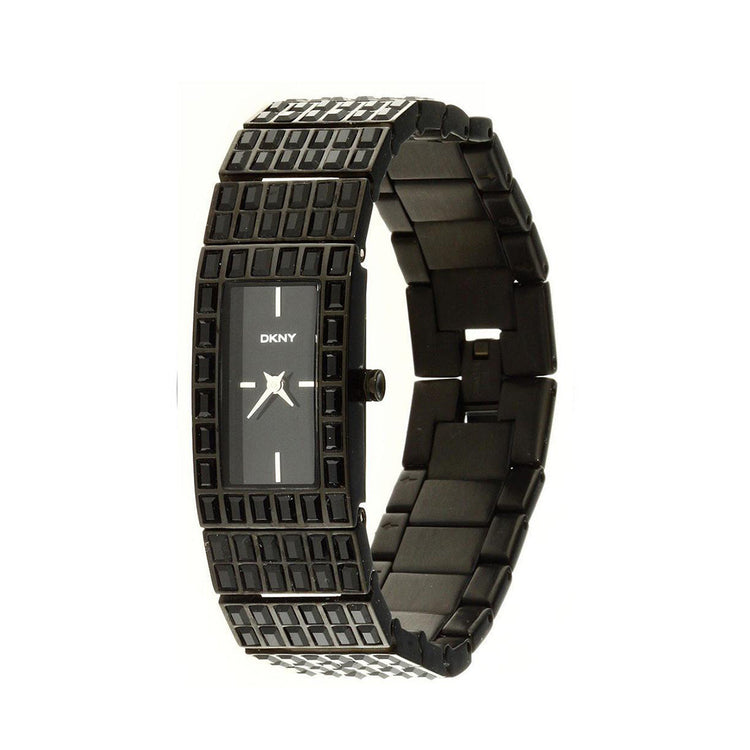 Ένα κομψό και μοδάτο γυναικείο ρολόι χειρός του γνωστού οίκου DKNY με μαύρο μπρασελέ και εντυπωσιακό μαύρο καντράν.