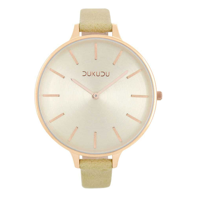DUKUDU Frauke Rose Gold Beige Leather Strap DU-106
