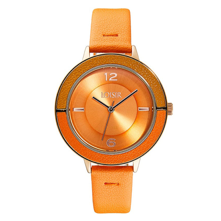 Ένα ανυπέρβλητο γυναικείο ρολόι που αποτελείται από πορτοκαλί καντράν και ασημί δείκτες. Διαθέτει πορτοκαλί περίβλημα και πορτοκαλί δερμάτινο λουράκι, με μια πορτοκαλί ραφή στην αρχή της κάθε μεριάς του. Ο minimal σχεδιασμός του αποπνέει κομψότητα και στυλ.