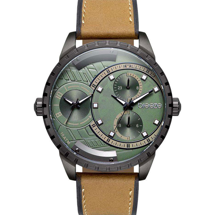 BREEZE Alchemist Dual Time Brown Leather Strap 110862.5