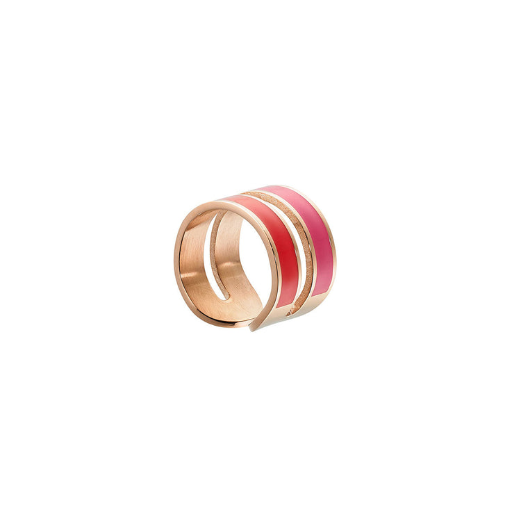 LOISIR γυναικείο δαχτυλίδι με φούξια και πορτοκαλί σμάλτο