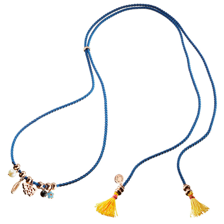 LOISIR γυναικείο κολιέ με μπλε κορδόνι, πέτρες και μεταλλικά στοιχεία