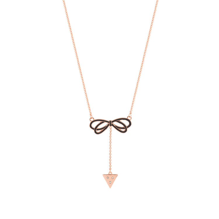 μία λεπτή αλυσίδα και στην άκρη της κρέμεται το εντυπωσιακό φιογκάκι με μαύρο σμάλτο.