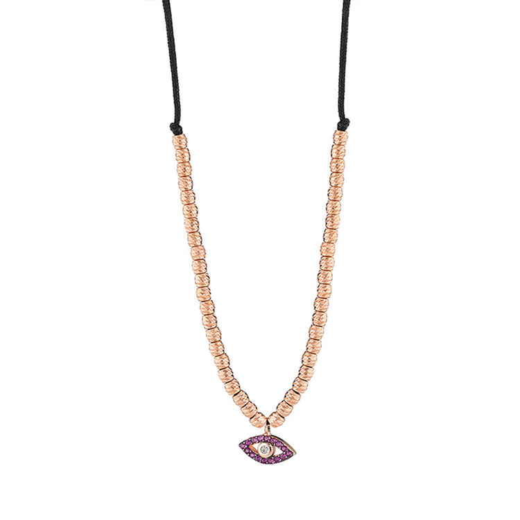 Το μάτι που βρίσκεται στο άκρο του έχει τοποθετημένες μικρές πέτρες σε φούξια και λευκό χρώμα,