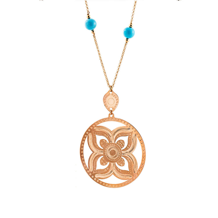 LOISIR γυναικείο κολιέ με στρογγυλό και οβάλ στοιχείο και τιρκουάζ πέτρες