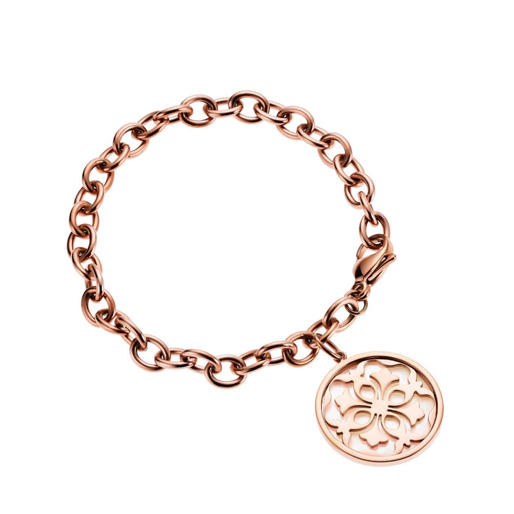 LOISIR γυναικείο βραχιόλι με διάτρητο σχέδιο λουλουδιού με ροζ επιμετάλλωση