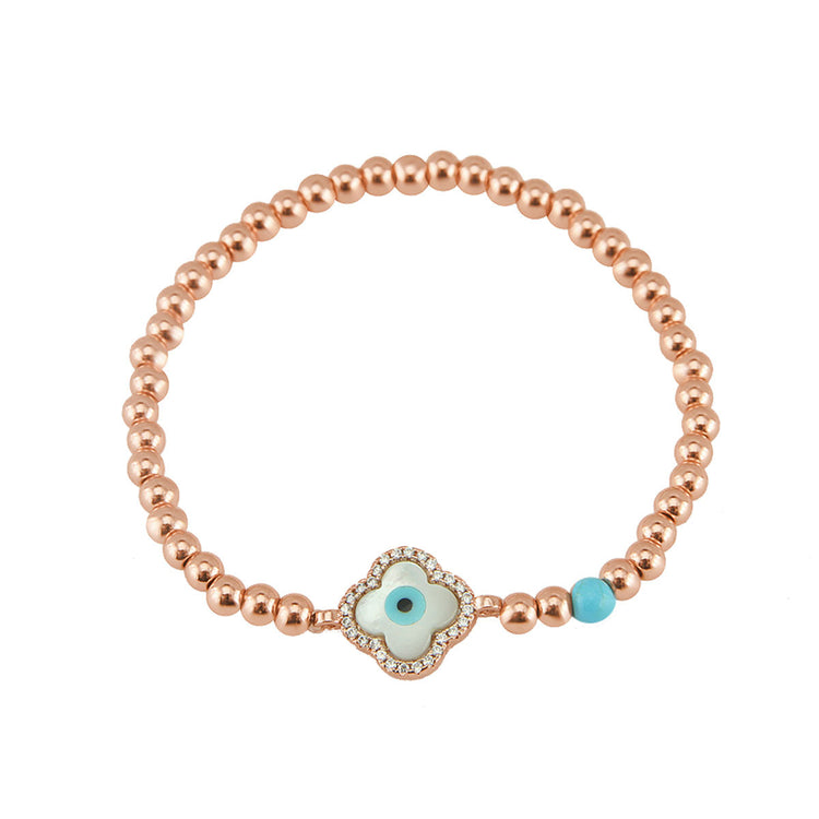LOISIR γυναικείο βραχιόλι με λουλούδι από λευκά ζιργκόν και φίλντισι ματάκι