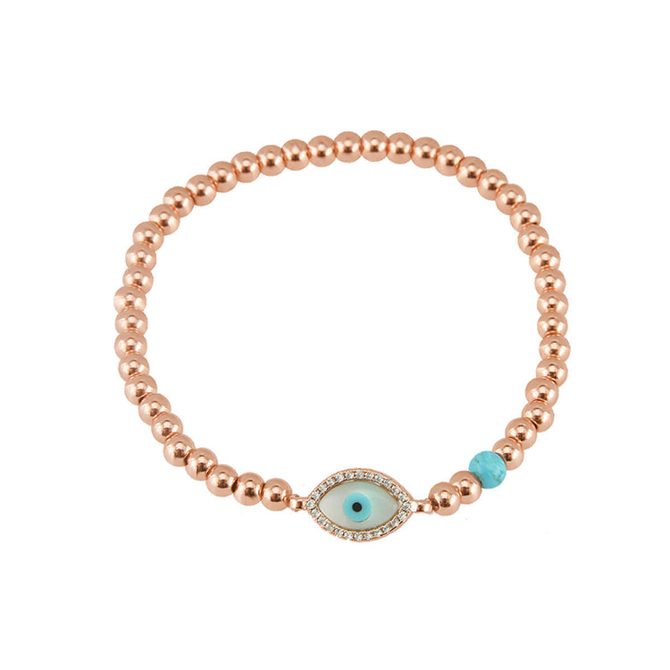 LOISIR γυναικείο βραχιόλι με ματάκι από λευκά ζιργκόν και φίλντισι ματάκι