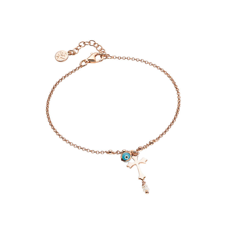 LOISIR γυναικείο βραχιόλι με σταυρό και μάτι