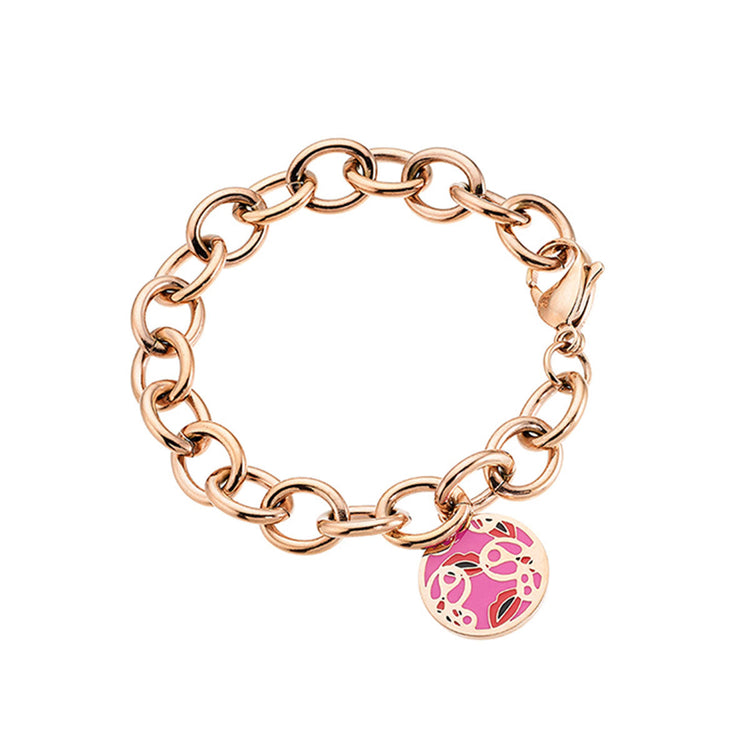 Ένα φανατστικό γυναικείο βραχιόλι με χοντρή αλυσίδα φτιαγμένη από ατσάλι σε ροζ επιμετάλλωση.