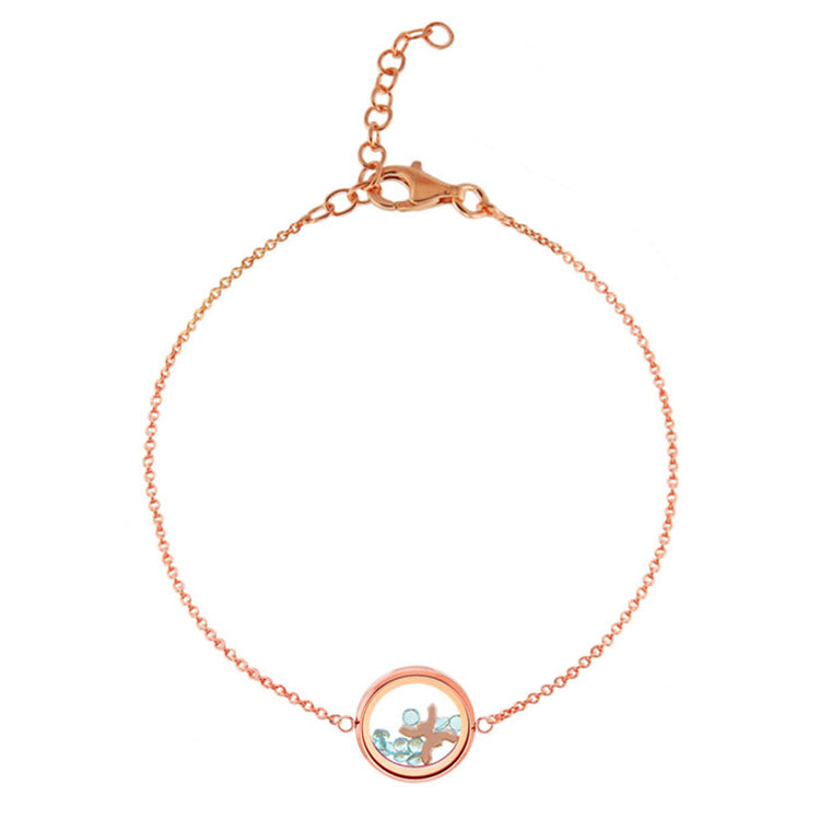 Ένα εκλεπτυσμένο γυναικείο βραχιόλι με λεπτή αλυσίδα φτιαγμένη από ατσάλι σε ροζ επιμετάλλωση.