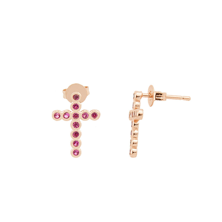 LOISIR σκουλαρίκια με σταύρο από φούξια ζιργκόν