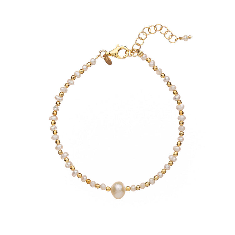 Ένα ξεχωριστό βραχιόλι με μαργαριτάρι και ασημένιες σφαίρες, ημι-άκαμπτο, από την Alisia, κατασκευασμένο από ασήμι 925.