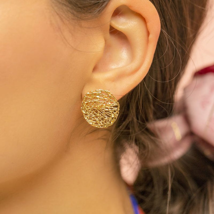 Ένα μοντέρνο σετ σκουλαρίκια με κυκλικό μενταγιόν στην κορυφή του και ιδιαίτερο σχέδιο πλέγματος, από την Alisia, κατασκευασμένο από ασήμι 925.