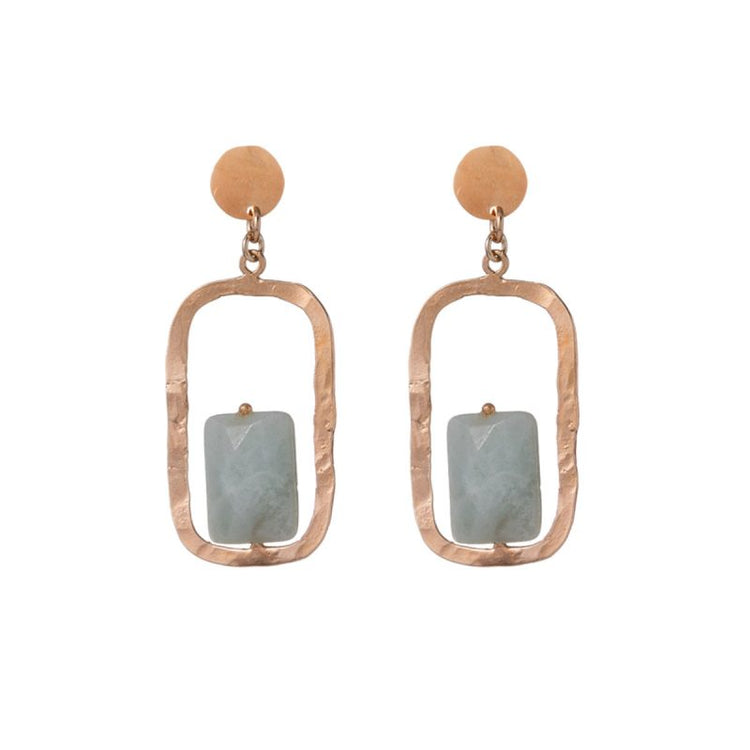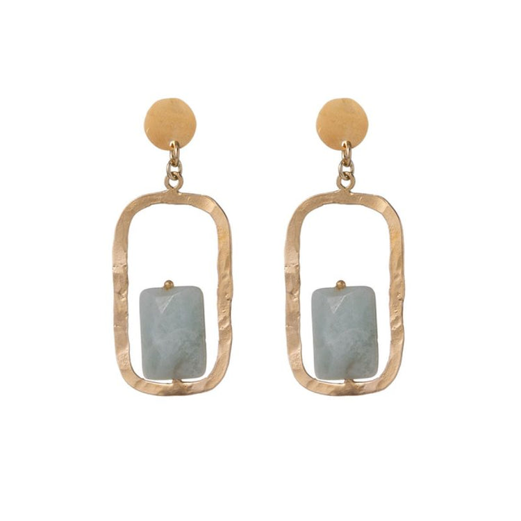 Ένα εκπληκτικό σετ σκουλαρίκια ορθογώνια με πλαίσιο και πέτρα αμαζονίτη σε αποχρώσεις του μπλέ, από την Alisia, κατασκευασμένο από ασήμι 925.