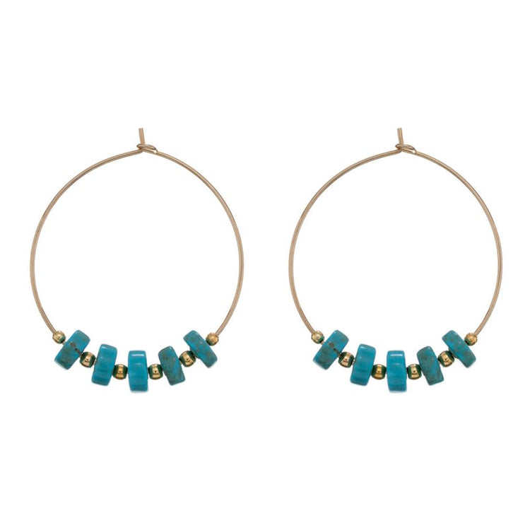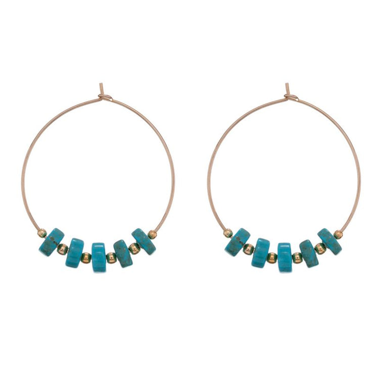 Ένα μοντέρνο σετ σκουλαρίκια κρίκοι με πέτρες τιρκουάζ και σφαιρικές ράβδους ενδιάμεσα, από την Alisia, κατασκευασμένο από ασήμι 925.