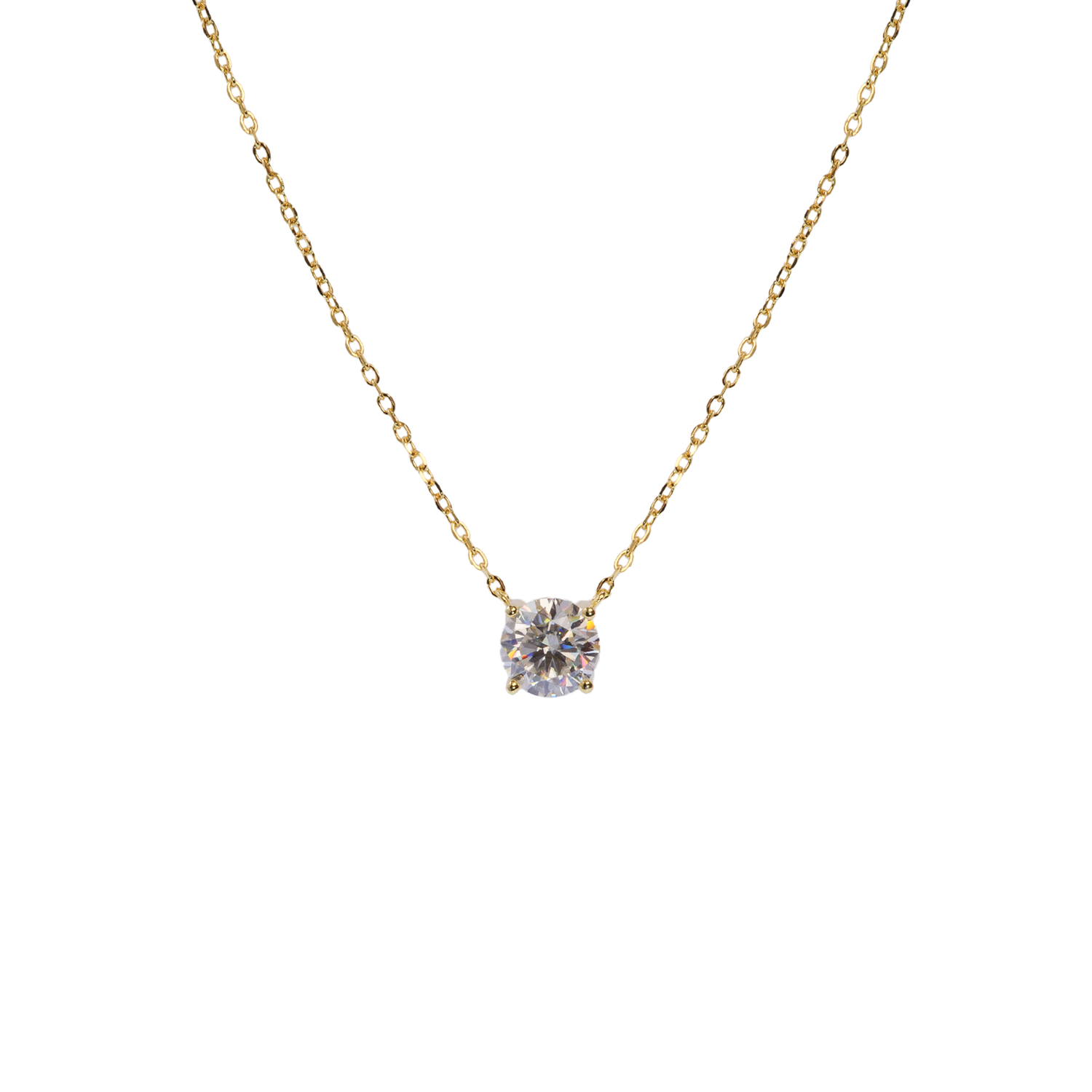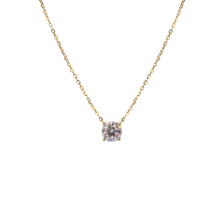 Αυτό το λεπτό και διακριτικό κολιέ διαθέτει ως κεντρικό στοιχείο ένα στρογγυλό επίχρυσο μοτίφ διακοσμιμένο με τεχνιτό διαμάντι (μοϊσανίτης), γνωστό για την εξαιρετική του λάμψη και ανθεκτικότητα.