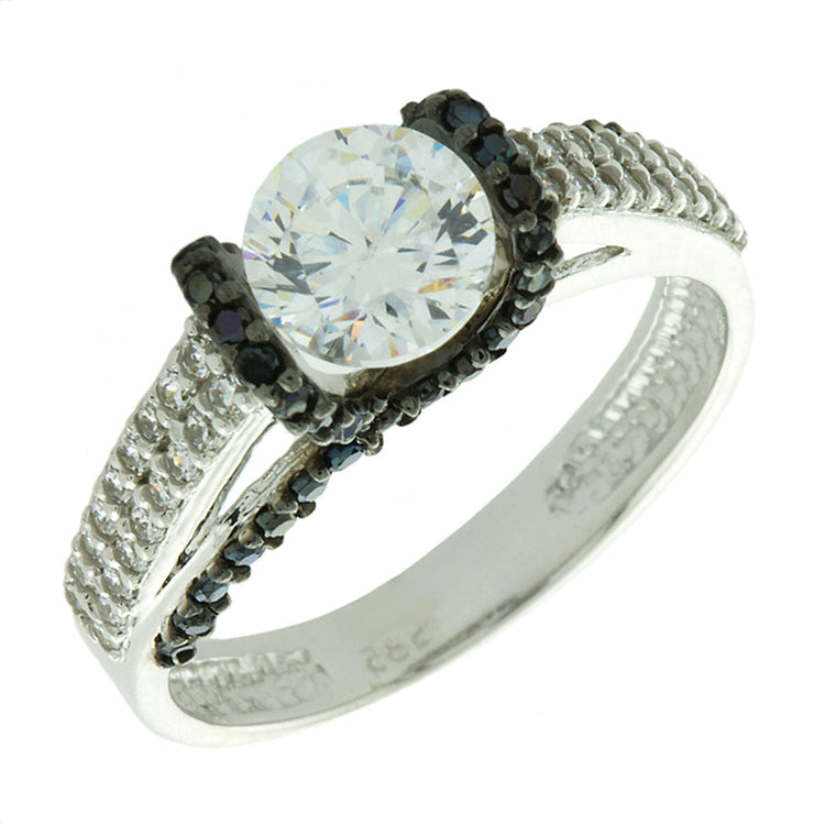 Αποτελείται από πέτρα ζιργκόν λευκού χρώματος στο κέντρο και διακοσμείται με μικρότερες πέτρες ζιργκόν σε μαύρη απόχρωση περιμετρικά της, αλλά και λευκού χρώματος στα πλαϊνά, δημιουργώντας ένα όμορφο αποτέλεσμα.