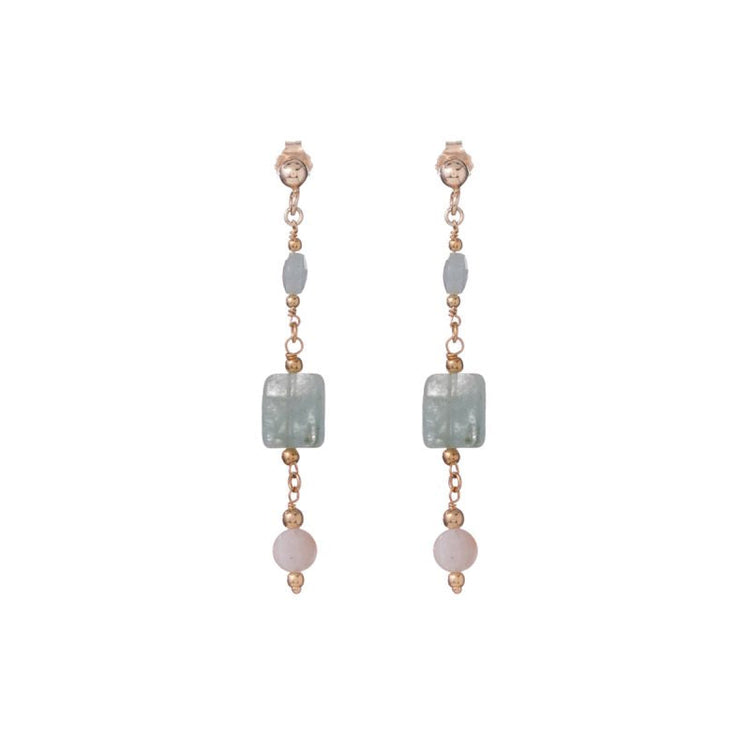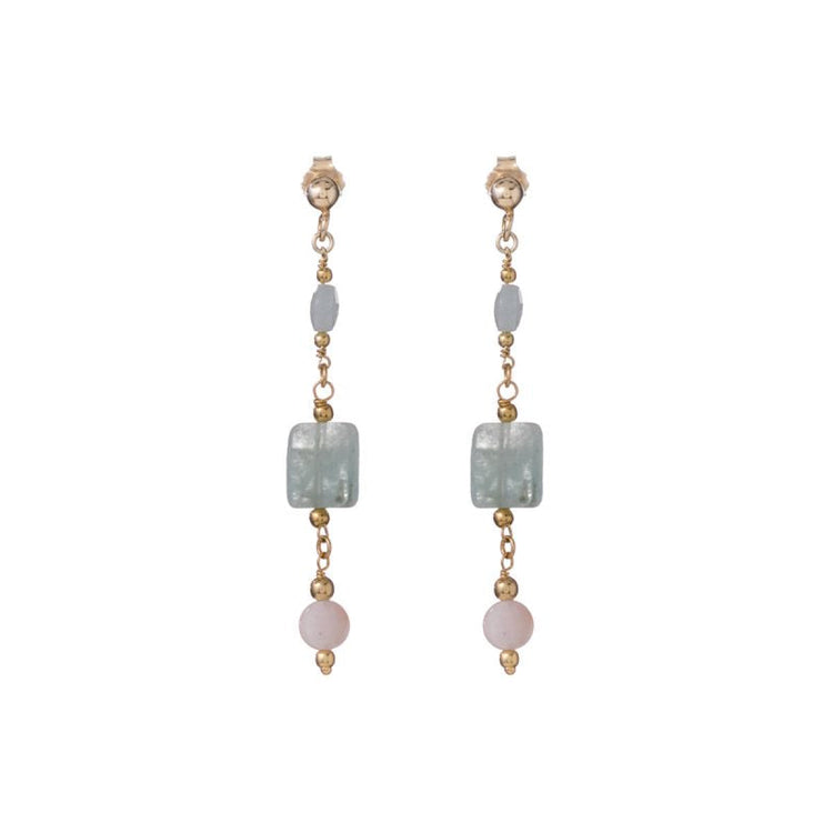Ένα εξαιρετικά κομψό σετ σκουλαρίκια με κρεμαστή αλυσίδα και πέτρες βηρύλλου κατά μήκος της, από την Alisia, κατασκευασμένο από ασήμι 925.