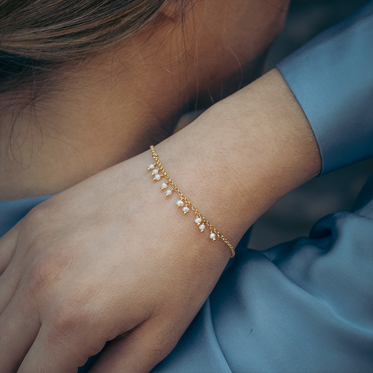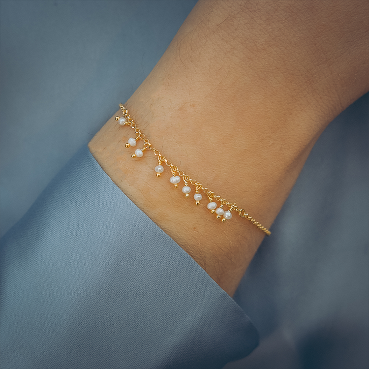 Ένα ξεχωριστό βραχιόλι με κρεμαστές πέρλες, από την Alisia, κατασκευασμένο από ασήμι 925.