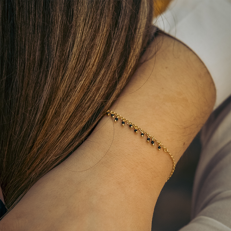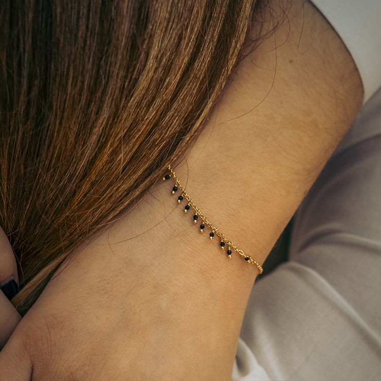 Ένα ξεχωριστό βραχιόλι με κρεμαστές μαύρες πέτρες, από την Alisia, κατασκευασμένο από ασήμι 925.